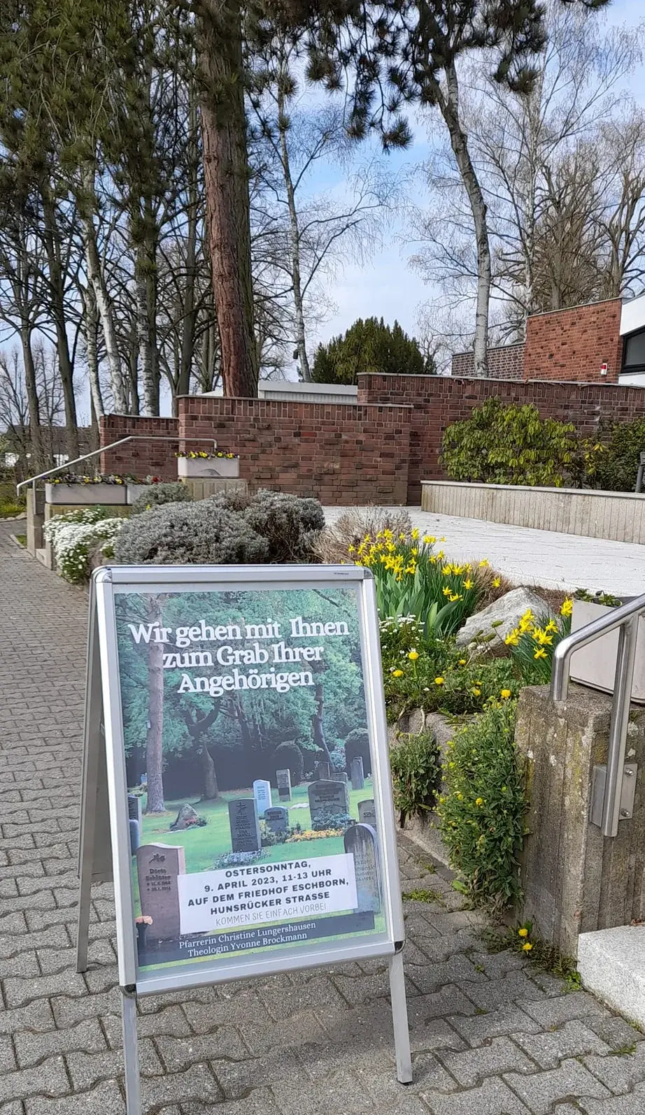 Zu bestimmten Terminen sind wir dafür auch auf dem Friedhof präsent: Manchmal am "Tag des Friedhofs", immer aber am"Ewigkeitssonntag"(der letzte Sonntag im Kirchenjahr vor dem ersten Adventssonntag) bieten wir Andacht und Begleitung auf dem Friedhof an. Im Gottesdienst um 10:30 Uhr in der Evangelischen Kirche werden die Namen der Verstorbenen des letzten Jahres verlesen und ihrer gedacht. Um 14 Uhr spielt der CVJM-Posaunenchor auf dem Friedhof an der Hunsrücker Straße, um 14.30 Uhr gibt es eine gemeinsame Andacht.